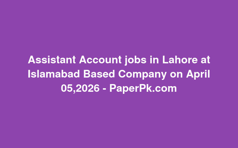 Check out this new career opening for Assistant Account jobs in Lahore at Islamabad Based Company on April 05,2026 - PaperPk.com in Pakistan. Review full details and apply.