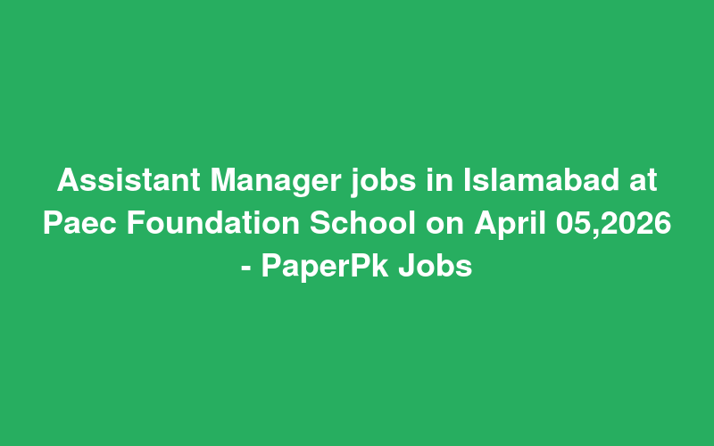Assistant Manager jobs in Islamabad at Paec Foundation School on April 05,2026 - PaperPk Jobs