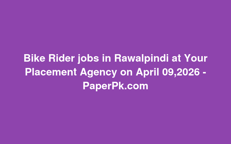 Check out this new career opening for Bike Rider jobs in Rawalpindi at Your Placement Agency on April 09,2026 - PaperPk.com in Pakistan. Review full details and apply.
