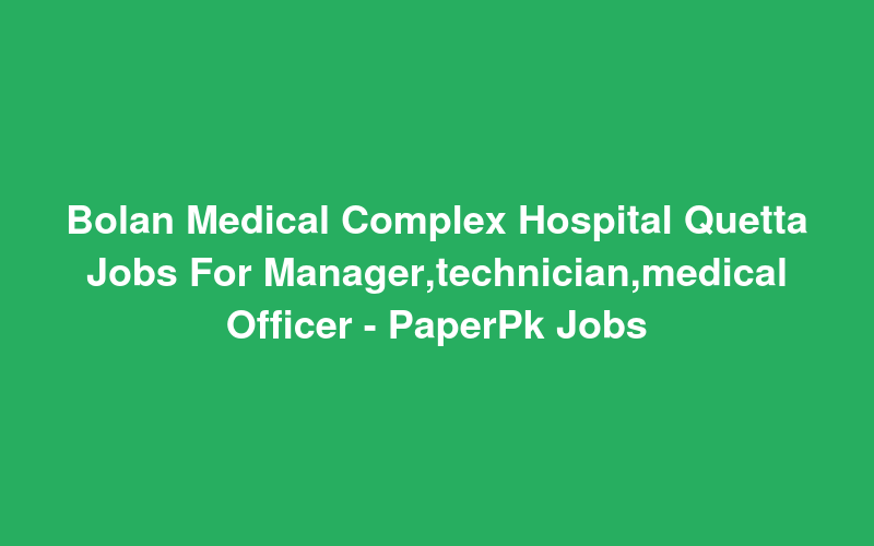 Bolan Medical Complex Hospital Quetta Jobs For Manager,technician,medical Officer - PaperPk Jobs
