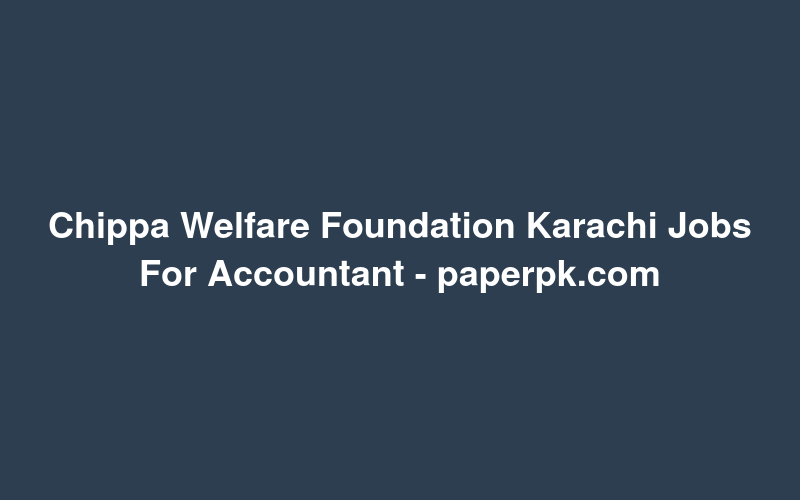 Check out this new career opening for Chippa Welfare Foundation Karachi Jobs For Accountant - paperpk.com in Pakistan. Review full details and apply.