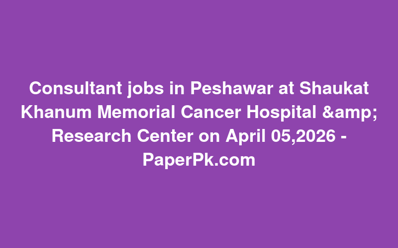 Check out this new career opening for Consultant jobs in Peshawar at Shaukat Khanum Memorial Cancer Hospital & Research Center on April 05,2026 - PaperPk.com in Pakistan. Review full details and apply.