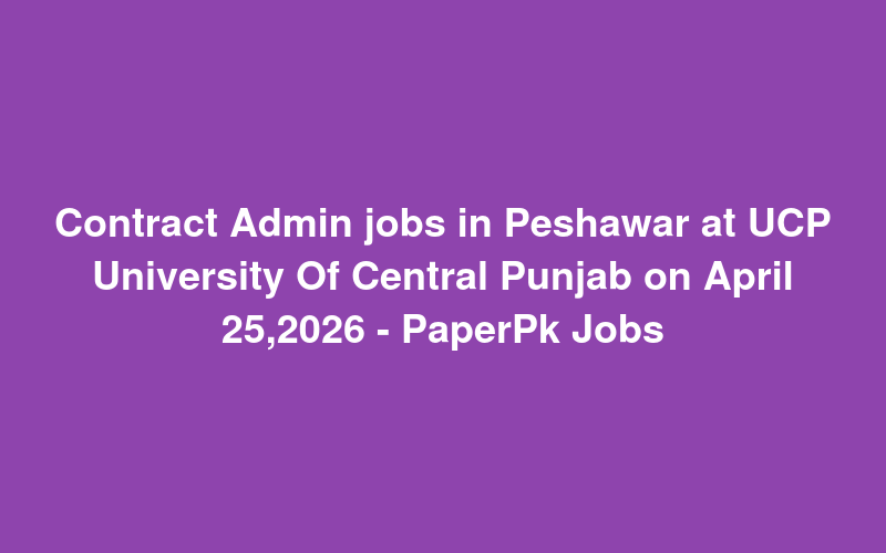 Check out this new career opening for Contract Admin jobs in Peshawar at UCP University Of Central Punjab on April 25,2026 - PaperPk Jobs in Pakistan. Review full details and apply.