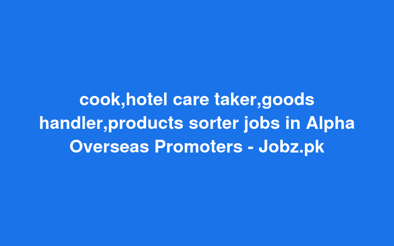 Check out this new career opening for cook,hotel care taker,goods handler,products sorter jobs in Alpha Overseas Promoters - Jobz.pk in Pakistan. Review full details and apply.