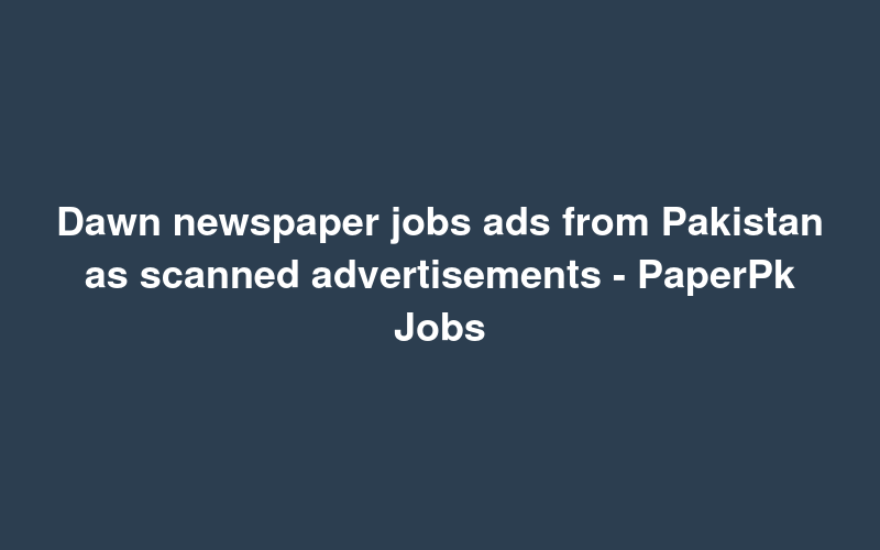 Check out this new career opening for Dawn newspaper jobs ads from Pakistan as scanned advertisements - PaperPk Jobs in Pakistan. Review full details and apply.