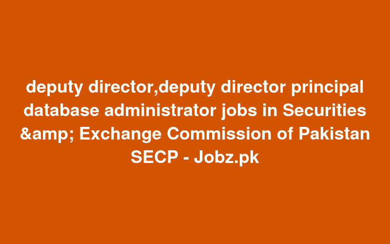 Check out this new career opening for deputy director,deputy director principal database administrator jobs in Securities & Exchange Commission of Pakistan SECP - Jobz.pk in Pakistan. Review full details and apply.