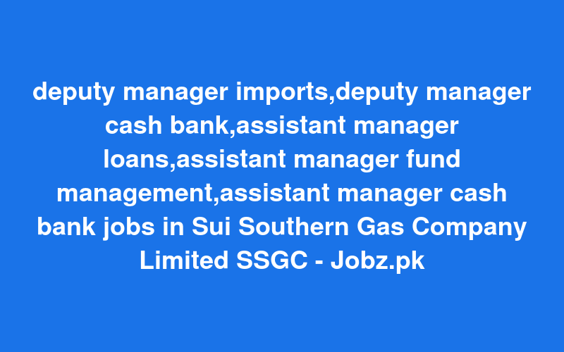 deputy manager imports,deputy manager cash bank,assistant manager loans,assistant manager fund management,assistant manager cash bank jobs in Sui Southern Gas Company Limited SSGC - Jobz.pk