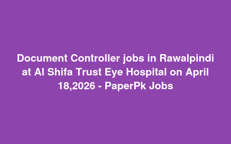 Document Controller jobs in Rawalpindi at Al Shifa Trust Eye Hospital on April 18,2026 - PaperPk Jobs
