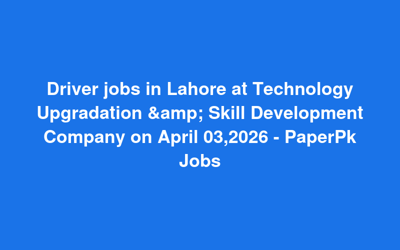 Check out this new career opening for Driver jobs in Lahore at Technology Upgradation & Skill Development Company on April 03,2026 - PaperPk Jobs in Pakistan. Review full details and apply.