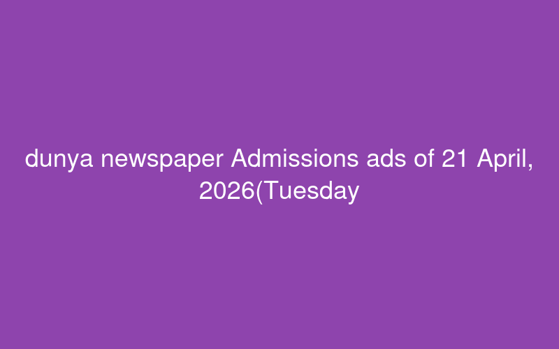 dunya newspaper Admissions ads of 21 April, 2026(Tuesday) from Pakistan as scanned advertisements - PaperPk Jobs