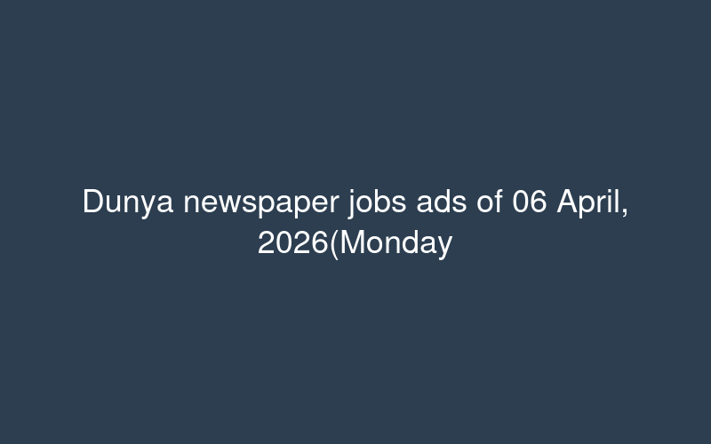 Dunya newspaper jobs ads of 06 April, 2026(Monday) - paperpk.com