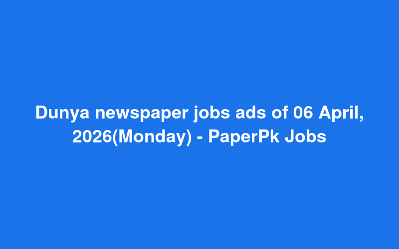 Check out this new career opening for Dunya newspaper jobs ads of 06 April, 2026(Monday) - PaperPk Jobs in Pakistan. Review full details and apply.
