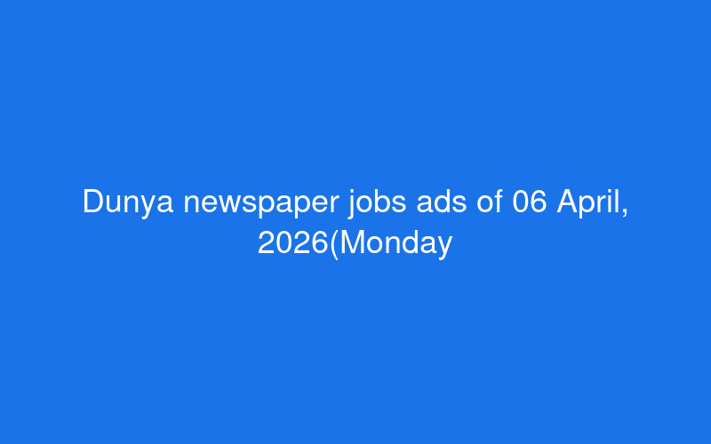 Dunya newspaper jobs ads of 06 April, 2026(Monday) - PaperPk Jobs