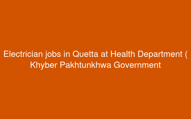 Electrician jobs in Quetta at Health Department ( Khyber Pakhtunkhwa Government ) on April 03,2026 - PaperPk Jobs