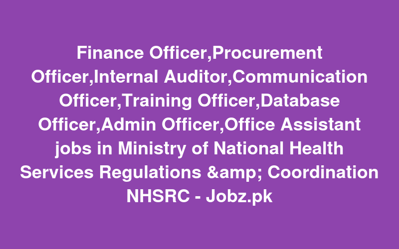 Finance Officer,Procurement Officer,Internal Auditor,Communication Officer,Training Officer,Database Officer,Admin Officer,Office Assistant jobs in Ministry of National Health Services Regulations & Coordination NHSRC - Jobz.pk