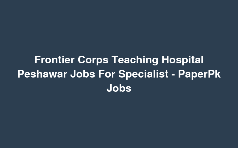 Check out this new career opening for Frontier Corps Teaching Hospital Peshawar Jobs For Specialist - PaperPk Jobs in Pakistan. Review full details and apply.