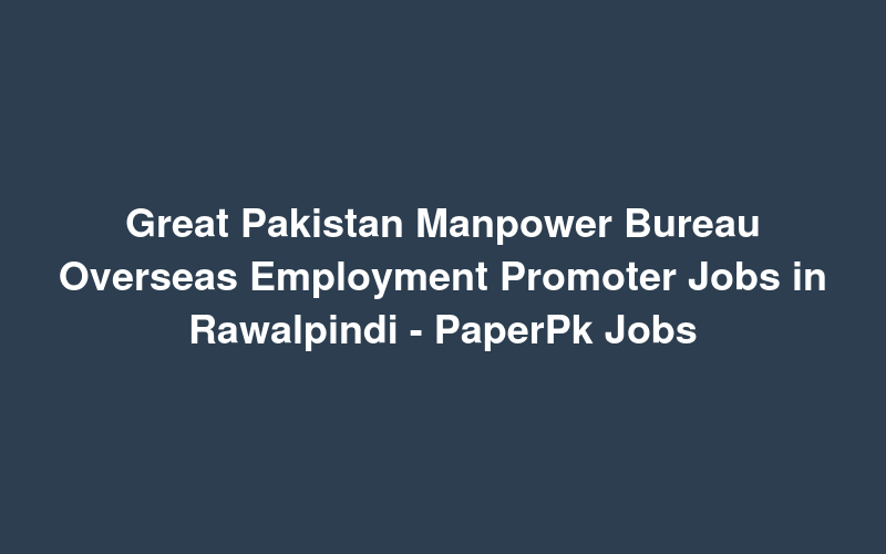 Check out this new career opening for Great Pakistan Manpower Bureau Overseas Employment Promoter Jobs in Rawalpindi - PaperPk Jobs in Pakistan. Review full details and apply.