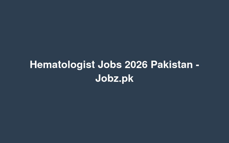 Hematologist Jobs 2026 Pakistan - Jobz.pk