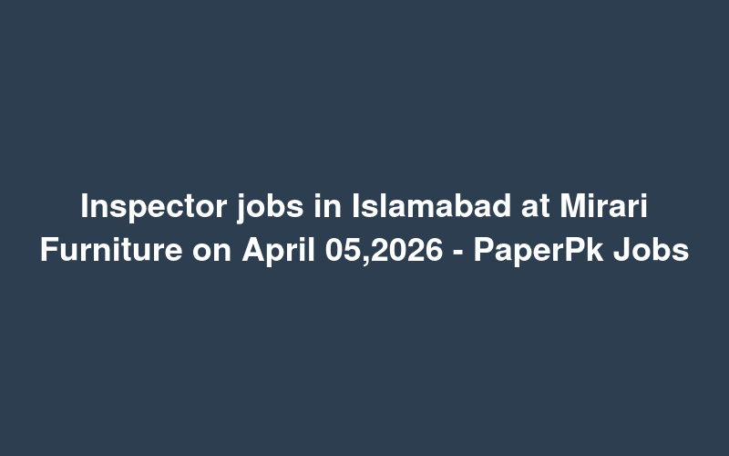 Check out this new career opening for Inspector jobs in Islamabad at Mirari Furniture on April 05,2026 - PaperPk Jobs in Pakistan. Review full details and apply.