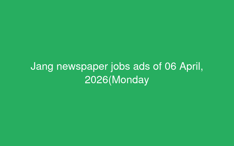 Jang newspaper jobs ads of 06 April, 2026(Monday) - paperpk.com