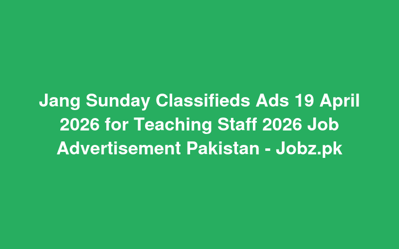 Jang Sunday Classifieds Ads 19 April 2026 for Teaching Staff 2026 Job Advertisement Pakistan - Jobz.pk