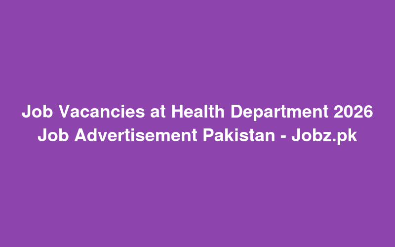 Check out this new career opening for Job Vacancies at Health Department 2026 Job Advertisement Pakistan - Jobz.pk in Pakistan. Review full details and apply.