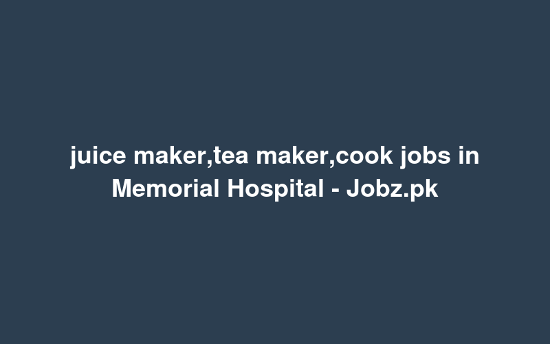 Check out this new career opening for juice maker,tea maker,cook jobs in Memorial Hospital - Jobz.pk in Pakistan. Review full details and apply.