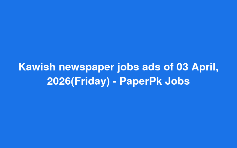 Check out this new career opening for Kawish newspaper jobs ads of 03 April, 2026(Friday) - PaperPk Jobs in Pakistan. Review full details and apply.
