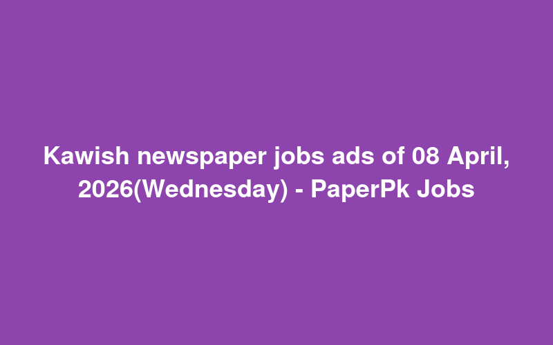 Check out this new career opening for Kawish newspaper jobs ads of 08 April, 2026(Wednesday) - PaperPk Jobs in Pakistan. Review full details and apply.