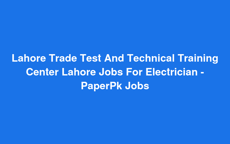 Lahore Trade Test And Technical Training Center Lahore Jobs For Electrician - PaperPk Jobs
