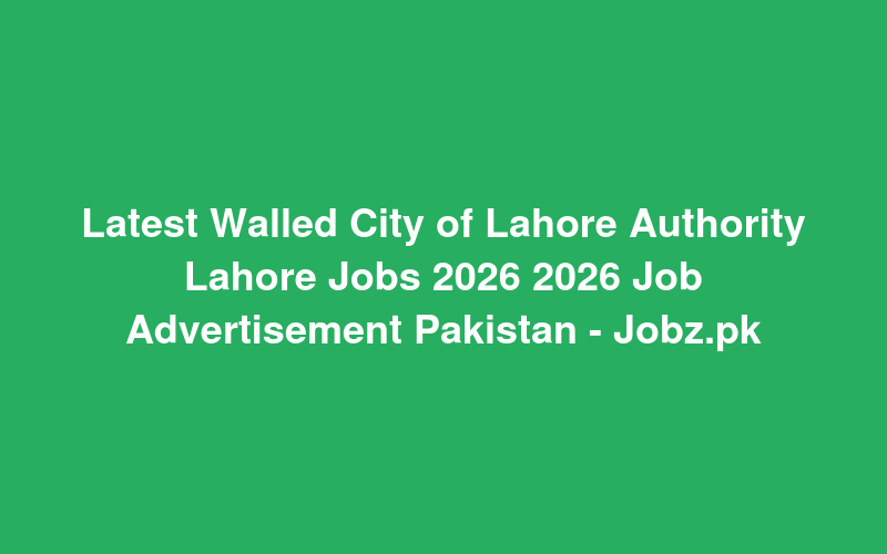 Latest Walled City of Lahore Authority Lahore Jobs 2026 2026 Job Advertisement Pakistan - Jobz.pk