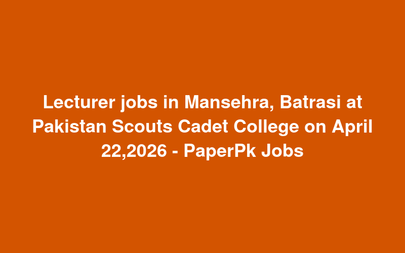 Check out this new career opening for Lecturer jobs in Mansehra, Batrasi at Pakistan Scouts Cadet College on April 22,2026 - PaperPk Jobs in Pakistan. Review full details and apply.