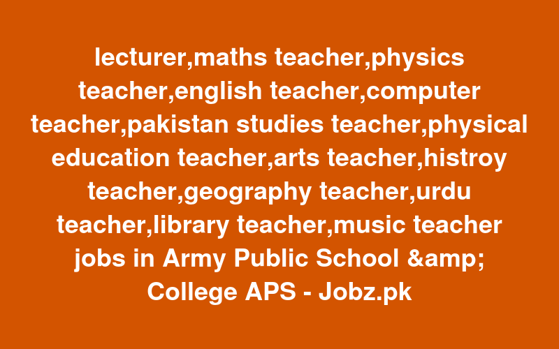lecturer,maths teacher,physics teacher,english teacher,computer teacher,pakistan studies teacher,physical education teacher,arts teacher,histroy teacher,geography teacher,urdu teacher,library teacher,music teacher jobs in Army Public School & College APS - Jobz.pk