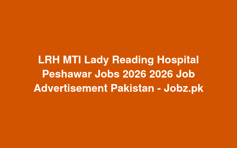 Check out this new career opening for LRH MTI Lady Reading Hospital Peshawar Jobs 2026 2026 Job Advertisement Pakistan - Jobz.pk in Pakistan. Review full details and apply.
