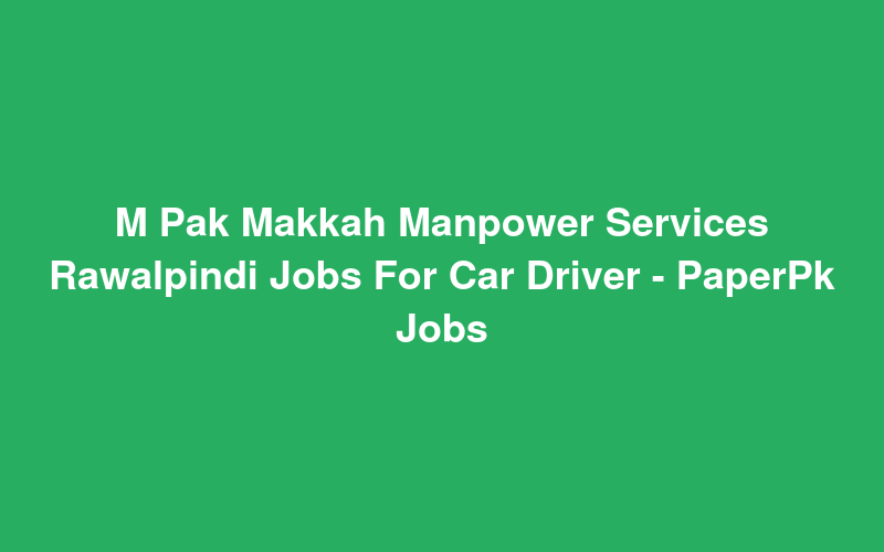 M Pak Makkah Manpower Services Rawalpindi Jobs For Car Driver - PaperPk Jobs