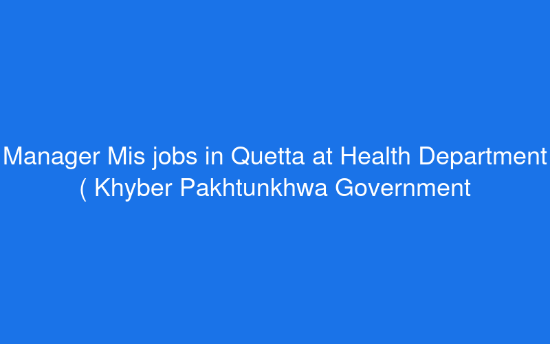 Manager Mis jobs in Quetta at Health Department ( Khyber Pakhtunkhwa Government ) on April 22,2026 - PaperPk Jobs