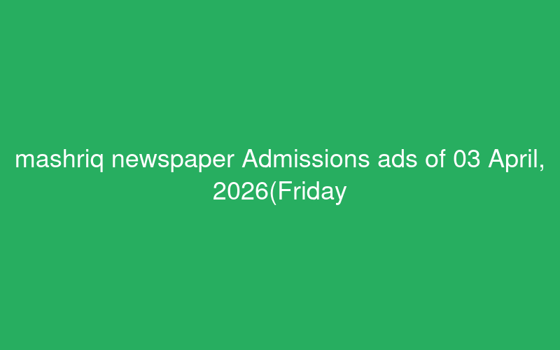 Check out this new career opening for mashriq newspaper Admissions ads of 03 April, 2026(Friday) from Pakistan as scanned advertisements - PaperPk Jobs in Pakistan. Review full details and apply.