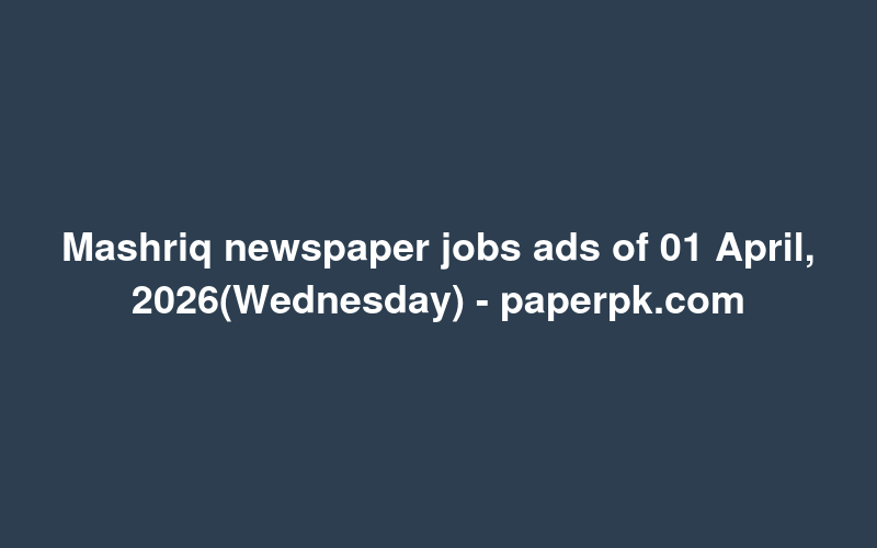 Check out this new career opening for Mashriq newspaper jobs ads of 01 April, 2026(Wednesday) - paperpk.com in Pakistan. Review full details and apply.
