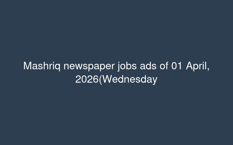 Mashriq newspaper jobs ads of 01 April, 2026(Wednesday) - paperpk.com