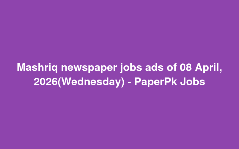 Check out this new career opening for Mashriq newspaper jobs ads of 08 April, 2026(Wednesday) - PaperPk Jobs in Pakistan. Review full details and apply.