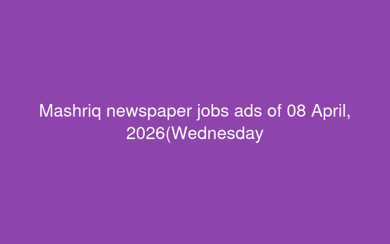 Mashriq newspaper jobs ads of 08 April, 2026(Wednesday) - PaperPk Jobs