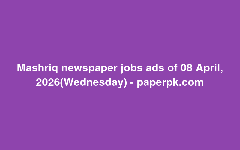 Mashriq newspaper jobs ads of 08 April, 2026(Wednesday) - paperpk.com