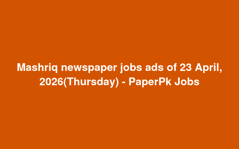 Check out this new career opening for Mashriq newspaper jobs ads of 23 April, 2026(Thursday) - PaperPk Jobs in Pakistan. Review full details and apply.