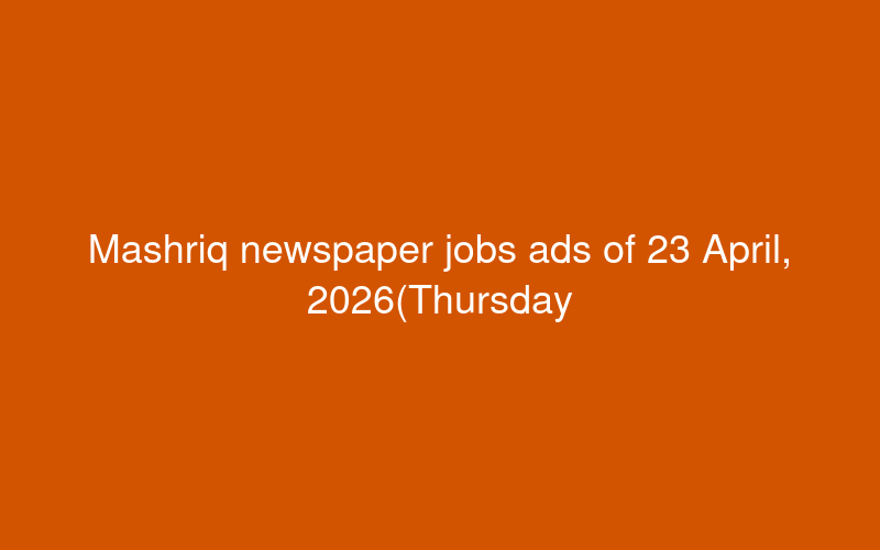 Mashriq newspaper jobs ads of 23 April, 2026(Thursday) - PaperPk Jobs