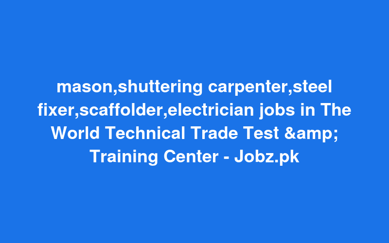 Check out this new career opening for mason,shuttering carpenter,steel fixer,scaffolder,electrician jobs in The World Technical Trade Test & Training Center - Jobz.pk in Pakistan. Review full details and apply.