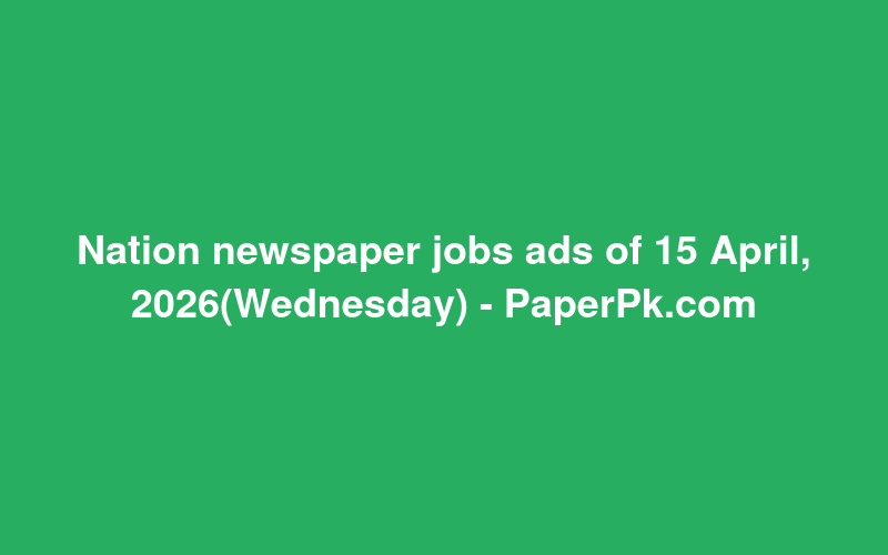 Nation newspaper jobs ads of 15 April, 2026(Wednesday) - PaperPk.com