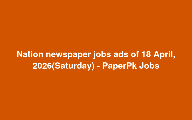 Check out this new career opening for Nation newspaper jobs ads of 18 April, 2026(Saturday) - PaperPk Jobs in Pakistan. Review full details and apply.