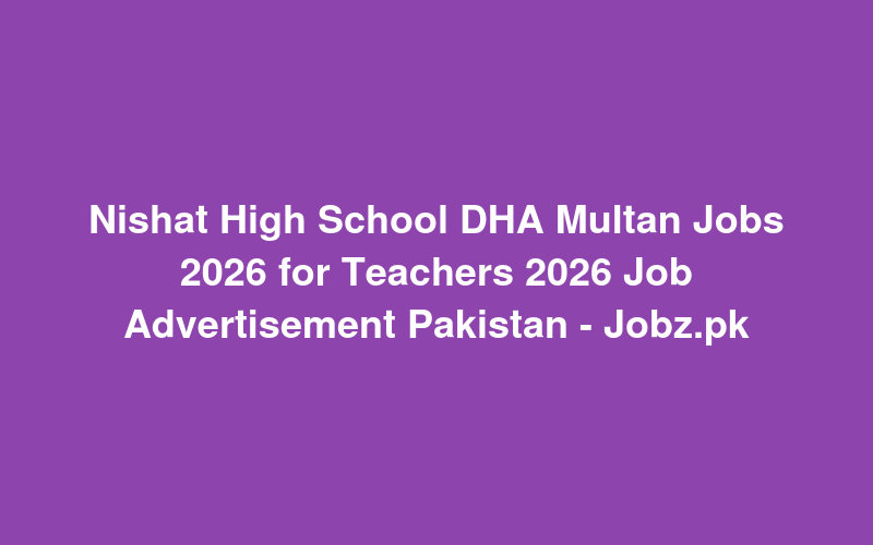 Nishat High School DHA Multan Jobs 2026 for Teachers 2026 Job Advertisement Pakistan - Jobz.pk