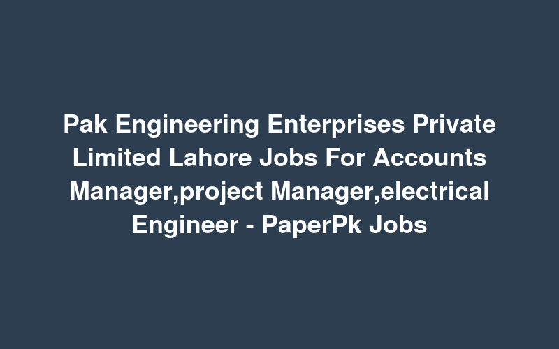 Pak Engineering Enterprises Private Limited Lahore Jobs For Accounts Manager,project Manager,electrical Engineer - PaperPk Jobs