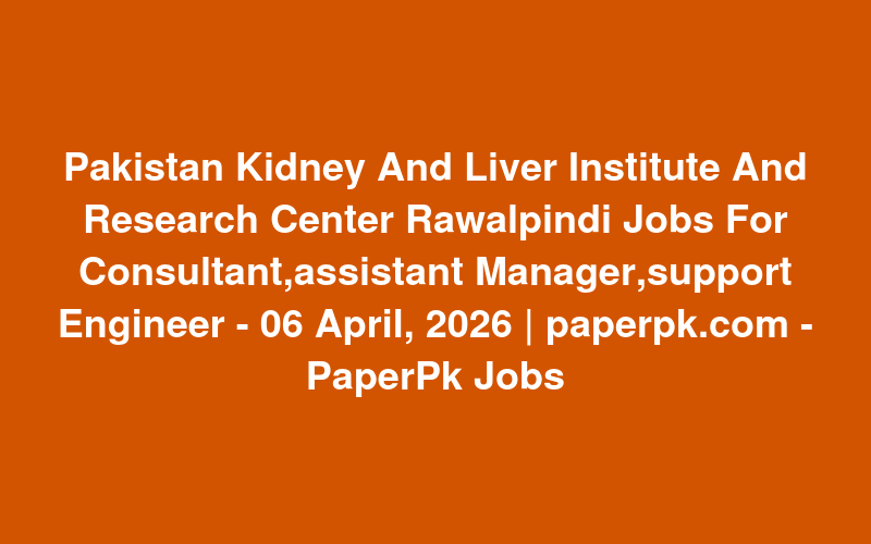 Pakistan Kidney And Liver Institute And Research Center Rawalpindi Jobs For Consultant,assistant Manager,support Engineer - 06 April, 2026 | paperpk.com - PaperPk Jobs